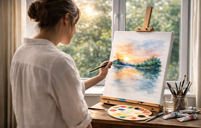 Акварелът ме научи на приемане. Водата винаги има своя воля. Вместо да се боря, започнах да наблюдавам.