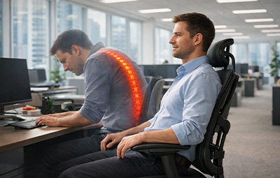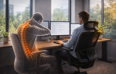 Добре подбраният офис стол работи в обратната посока. Той създава стабилност, дава опора там, където е нужна, и позволява на тялото да остане в по-естествена позиция през целия ден.