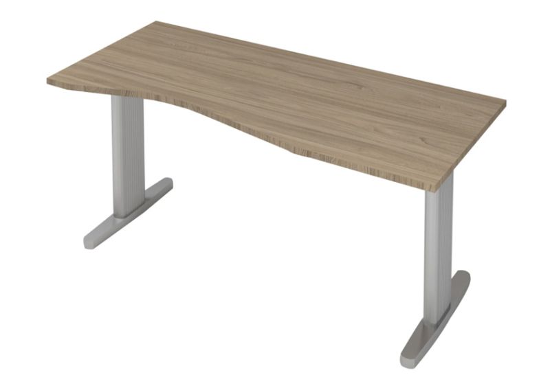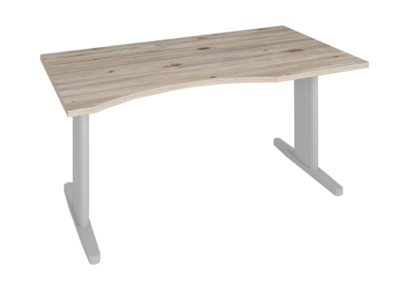 Работният плот е изработен от ПДЧ с меламиново покритие, което осигурява устойчивост на износване и лесна поддръжка. Металните крака в сив цвят добавят здравина и стабилност, като същевременно придават модерен индустриален вид.