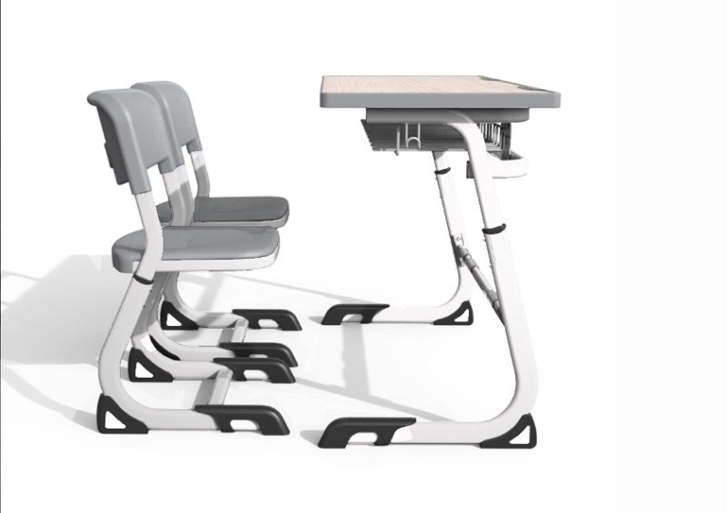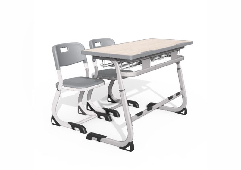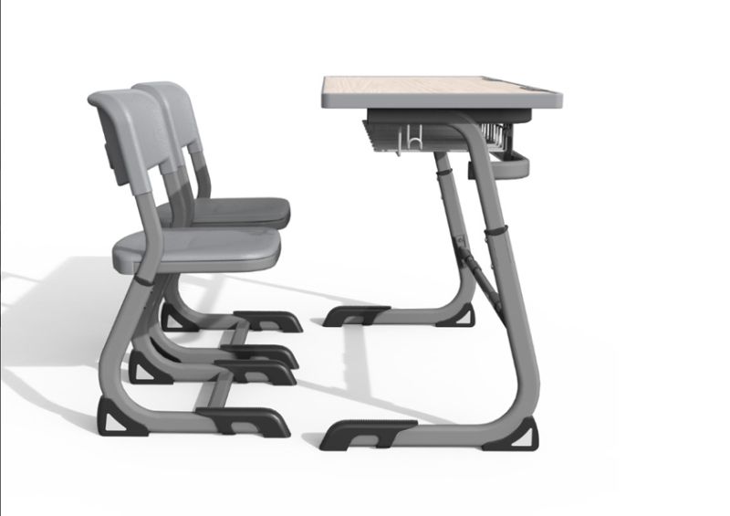 Комплектът включва бюро с регулируема височина и два стола, което го прави идеално решение както за училищни зали, така и за домашна учебна среда.