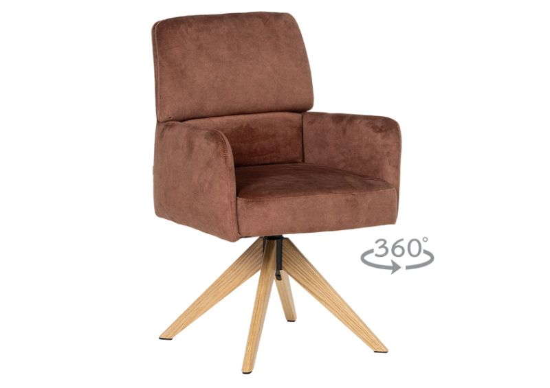Столът разполага с въртене на 360°, автоматично връщане в изходна позиция, люлеещ механизъм, както и покет пружини за максимално омекотяване и дълготраен комфорт. Вградените подлакътници осигуряват допълнителна опора, което прави модела отлично решение както за трапезария, така и за домашен офис или салон.