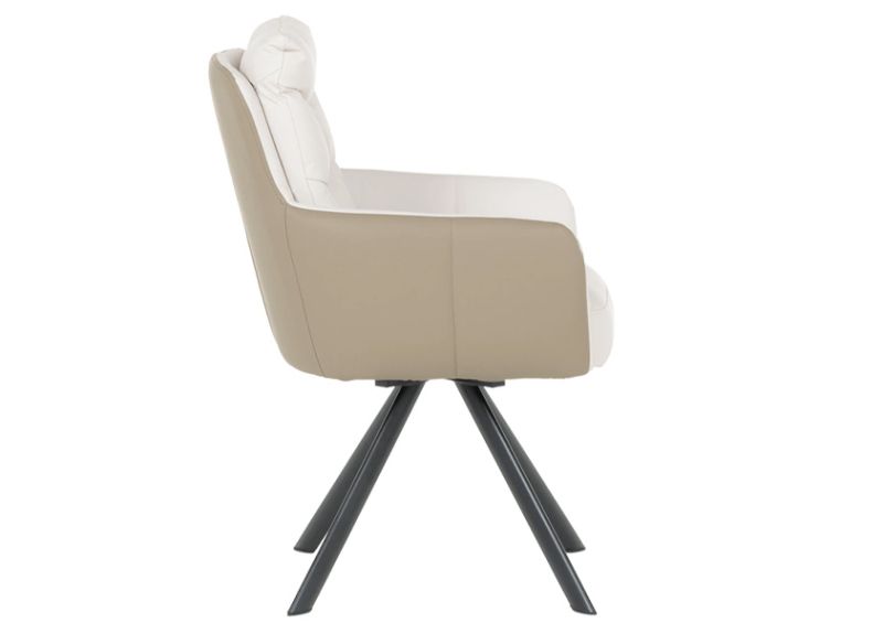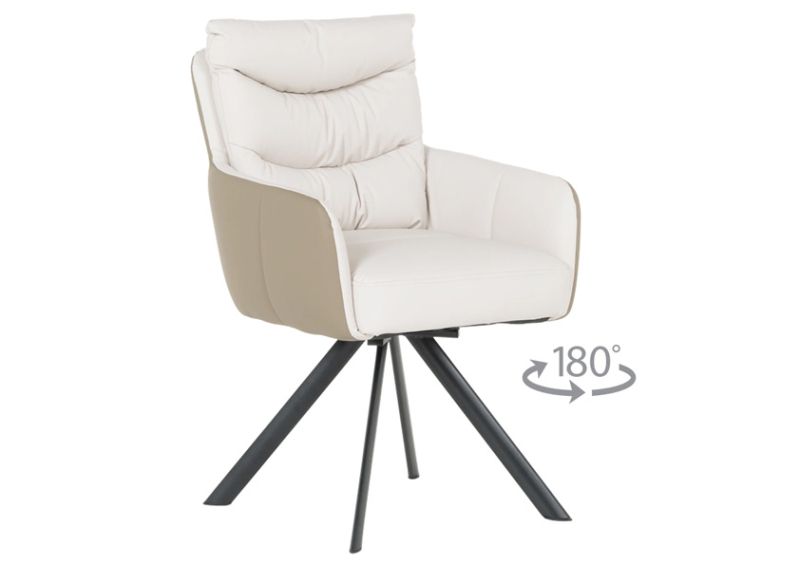 Базата от праховобоядисан метал в черен мат придава стабилност и минималистична визия. Вградената функция за 180° въртене и автоматично връщане в първоначална позиция осигуряват допълнителен комфорт и улесняват ежедневната употреба.
