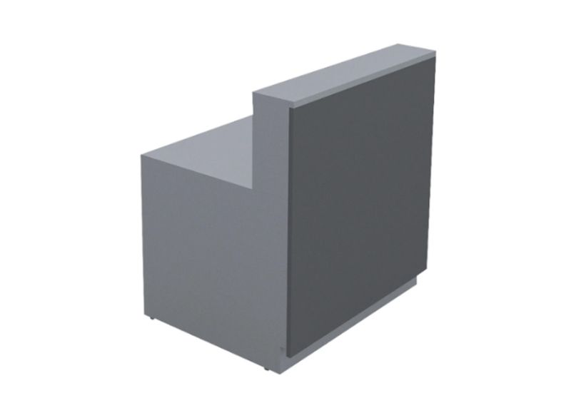 Модулът е изработен от висококачествено ПДЧ с меламиново покритие, комбинирано с HPL челни детайли, които осигуряват допълнителна здравина и представителен външен вид. Конструкцията с ABS кантове и стабилни работни плотове гарантира дълготрайна експлоатация дори при интензивна ежедневна употреба. Предвиден е като външен завършващ елемент, който допълва и оформя цялостната рецепционна композиция от серия POINT.