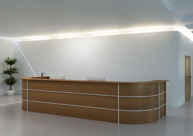 Правата офис рецепция е създадена за компании, които ценят функционалността, изчистения дизайн и дълготрайната изработка. Подходяща е за офиси, бизнес центрове, административни сгради, клиники и търговски обекти, където първият контакт с клиента е от ключово значение.