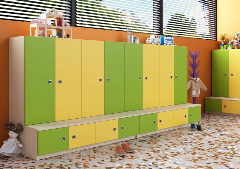 Практичен детски гардероб с функционален шкаф за обувки, създаден специално за нуждите на детски градини, училища и домашна среда. Моделът предлага оптимална организация на дрехи, обувки и лични вещи, като подпомага изграждането на навици за ред и самостоятелност при децата.