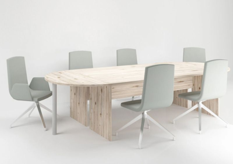 Заседателна маса с овален плот и изчистен, практичен дизайн, създадена за модерни офис интериори, конферентни и заседателни зали, в които комфортът и представителната визия са от ключово значение. Овалната форма насърчава комуникацията и създава по-добра динамика по време на срещи, презентации и екипни обсъждания.