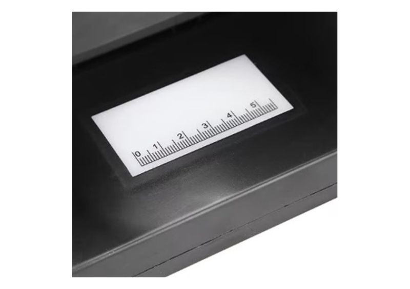 Вградената увеличаваща лупа улеснява разчитането на микротекст и фини детайли, които са ключови при установяване на фалшиви банкноти. Мерителната лента позволява сравнение на разстоянията между защитните знаци за допълнителна сигурност.