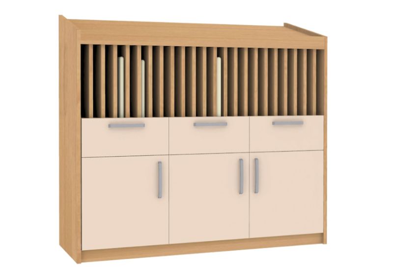 Този шкаф за съхранение на дневници е специално проектиран за нуждите на училища, детски градини, университети и административни институции, където е необходима ясна и систематизирана организация на документация. Конструкцията позволява подреждане на до 24 дневника, осигурявайки лесен достъп и отлична прегледност.