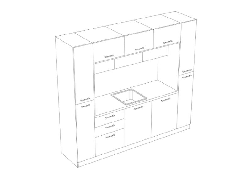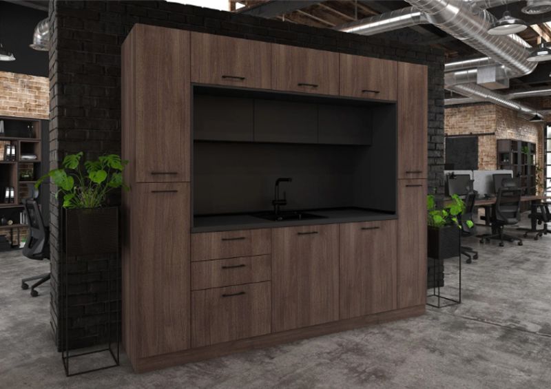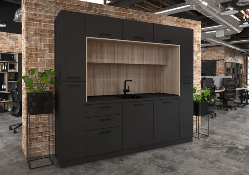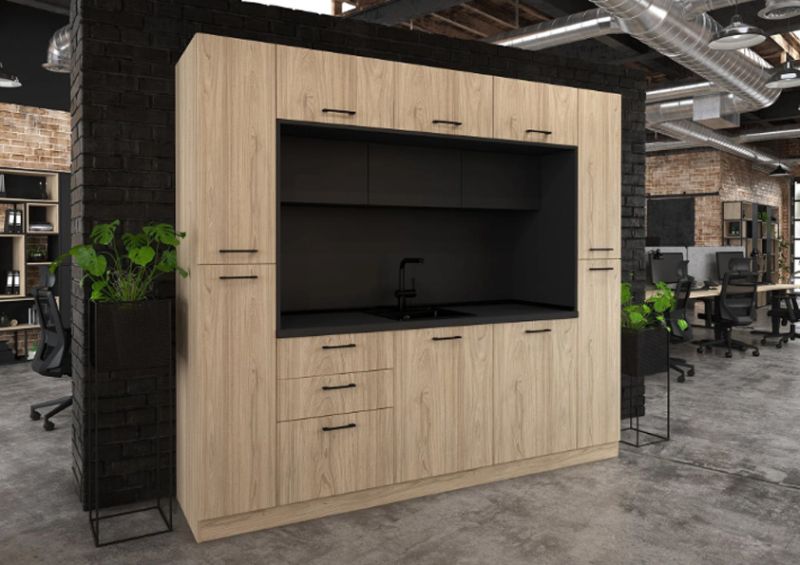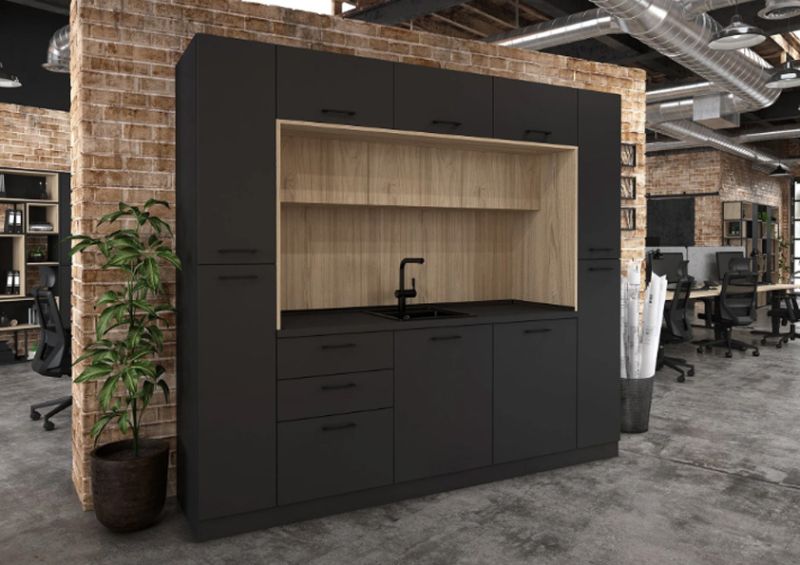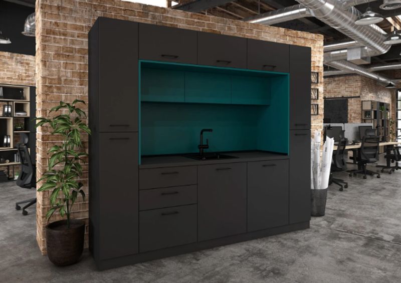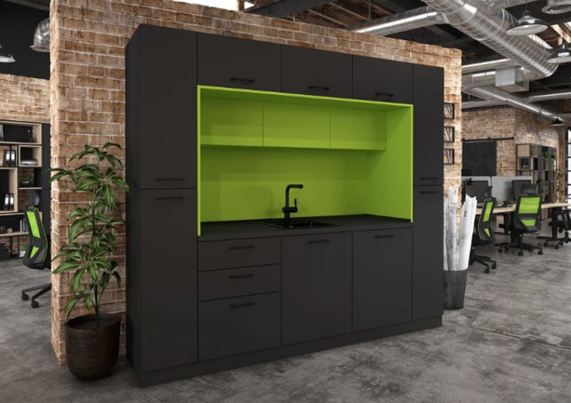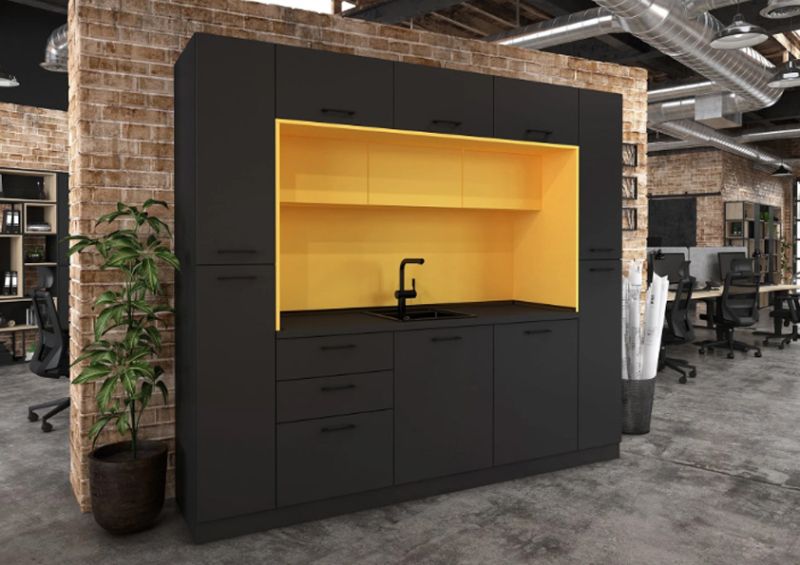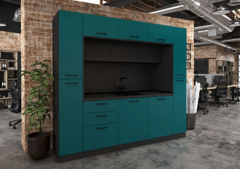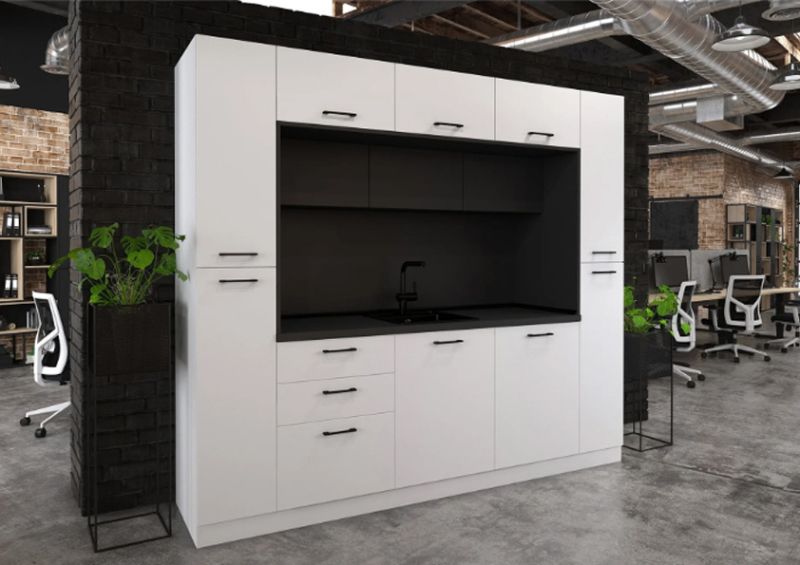 Кухнята е подходяща както за домашна, така и за офисна среда, като предлага възможност за избор на цветове според интериорните предпочитания.