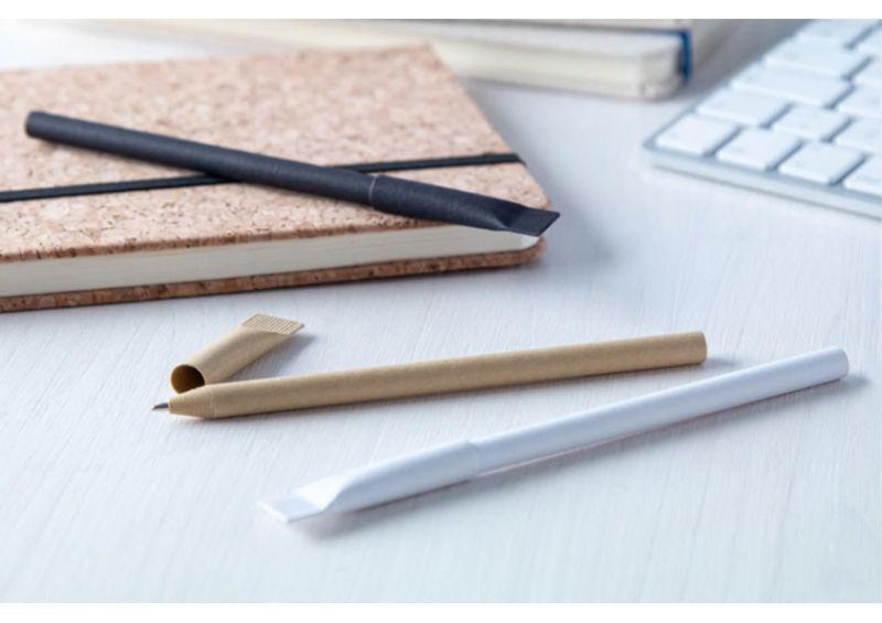 Еко химикал от рециклирана хартия със син пълнител, подходящ за корпоративно брандиране, рекламни кампании и устойчив офис избор.