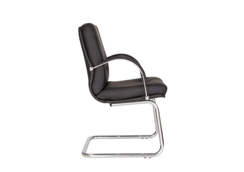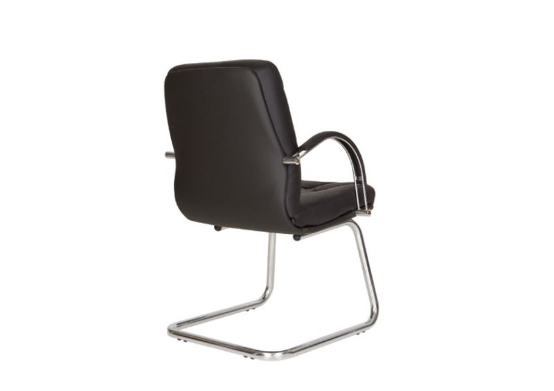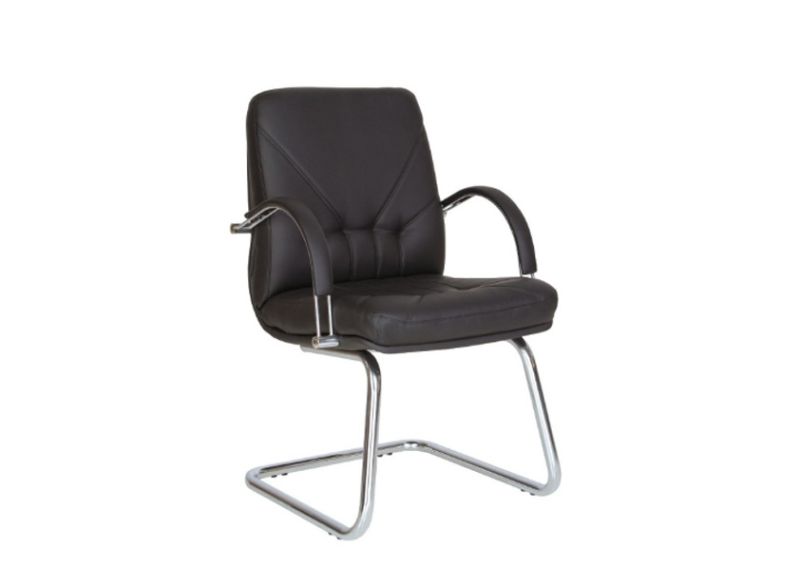 Здравата метална хромирана конструкция гарантира стабилност и надеждност, а фиксираните метални подлакътници с кожени падове допринасят за допълнителен комфорт по време на работа. Столът е подходящ за интензивна ежедневна употреба и е отличен избор за мениджърски кабинети и модерни офиси.