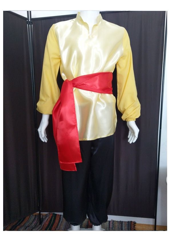 Мъжкият комплект включва сатенена риза, сатенени панталони и колан, съчетаващи изискан вид и удобство за различни тържествени поводи.